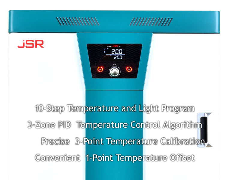 • 디지털 마이크로프로세서 PID 콘트롤러 • 그래픽 LCD 디스플레이 • 백라이트 그래픽 LCD 디스플레이는 사용자 편의 중심의 작동 정보를 제공 • UV 코팅 터치 판넬 • 램프내장형 정전식 터치 버튼은 사용감이 좋고 내구성이 뛰어남 • 인코더 타입 조그 다이얼 • 푸쉬 기능 조그 다이얼을 채용하여 사용하기 손쉬운 작동 방법을 제공 • 온도제어해상도 0.1 oC • 10 스텝 프로그램 작성 저장, 프로그램 1 ~ 999회 반복작동 (무한반복) [ JSMI-04CP, 04CPL ] • 10 스텝 램프 ON/OFF 설정하여 광주기 명암 환경을 설정 [ JSMI-04CPL ] • 예약타이머 : 1분 ~최대 99 시간 59 분 설정 • 정지타이머 : : 1분 ~최대 99 시간 59 분 설정 • 자주 사용하는 온도와 타이머 시간 저장 기능 • 3구간 PID 제어 알고리즘 • 3점 온도보정기능 / 1점 오프셋 온도보정기능 • CLASS A PT-100 Ω 센서 사용 • 정전 제어 복귀 기능과 타이머 유지기능 • 냉동기 보호를 위한 지연작동 기능 • 전자동 제상시스템 탑재. 작동 환경에 따라 제상주기 설정가능 • RS-232C PC 연결용 시리얼 포트 [옵션]